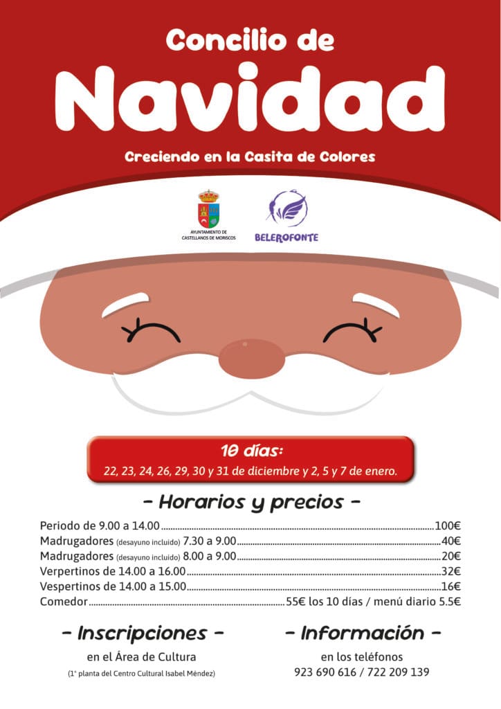 El Ayuntamiento de Castellanos de Moriscos lanza para los diez días de Navidad, el CONCILIO DE 4 A 36 MESES (Sin escolarizar), a modo de servicio de guardería, para favorecer la conciliación laboral y familiar.